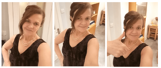 For, just as I raise a first fork-full of food to my mouth, my mobile buzzes into life; Prom-dress daughter.